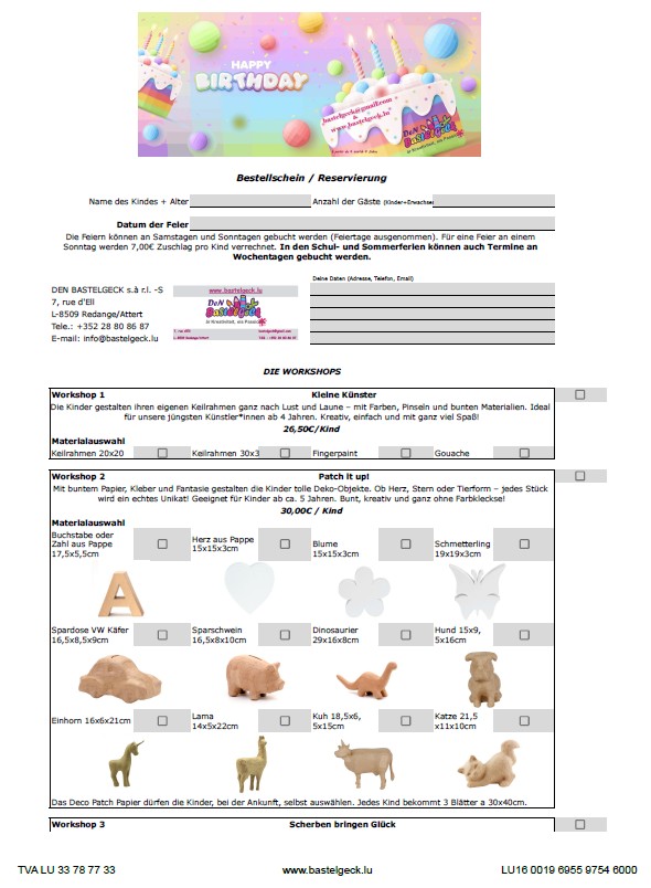 🎨 2 Stunden Bastelspaß im eigenen Geburtstagsbereich