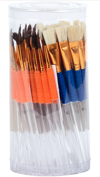 72 brushes with matching rubber grip. A soft, comfortable rubber grip for optimum grip.36 round pony hair brushes (12 x n°8, 12 x n°10, 12 x n°12)36 flat hog bristle brushes (12 x n°8, 12 x n°10, 12 x n°12).